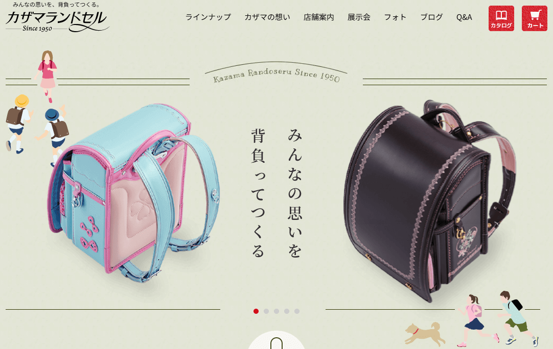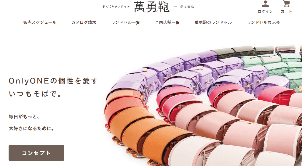 ほかのメーカーではなかなか見ない半カブセや横型ランドセルなど、独自性が強いランドセルを販売しています。人工皮革から牛革、コードバンまで一通りの素材のランドセルがあり、コードバンのランドセルだと10万円を超えます。